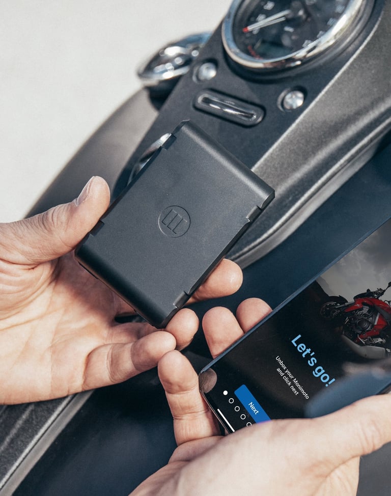 Monimoto es un dispositivo compacto e independiente, por lo que no implica costes de instalación y no afectará la garantía de su moto. Esto también significa que puede mover fácilmente su dispositivo Monimoto de una motocicleta a otra.